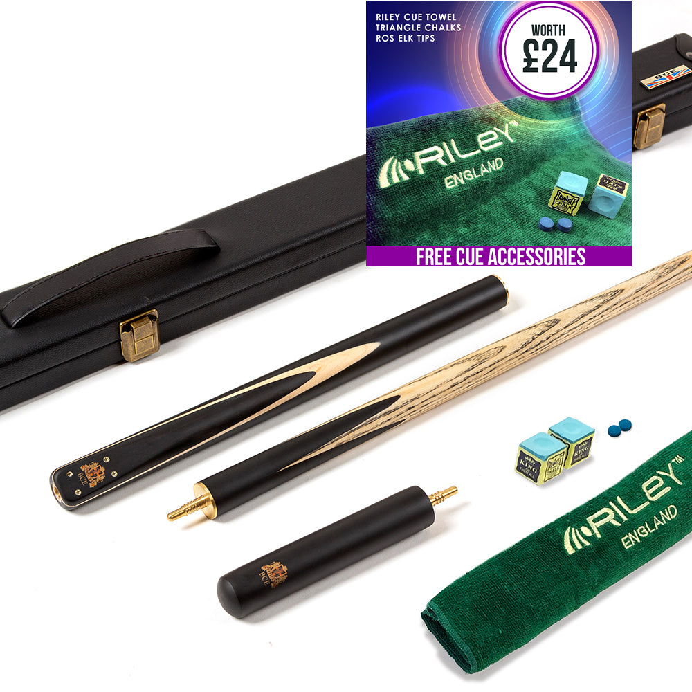 - Free accessory pack including ROS Elk tips (as used by Ronnie O'Sullivan); triangle chalk and Riley cue towel