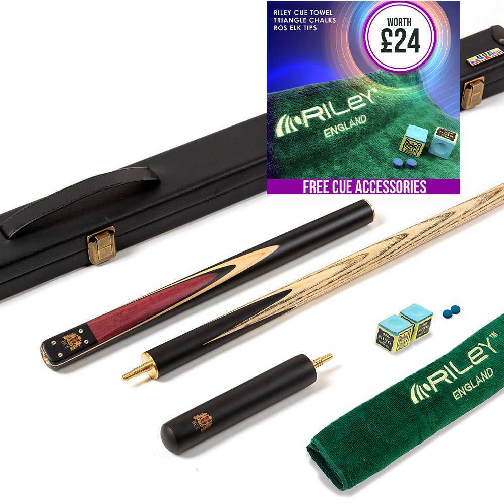 - Free accessory pack including ROS Elk tips (as used by Ronnie O'Sullivan); triangle chalk and Riley cue towel