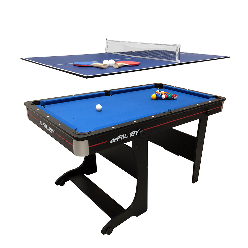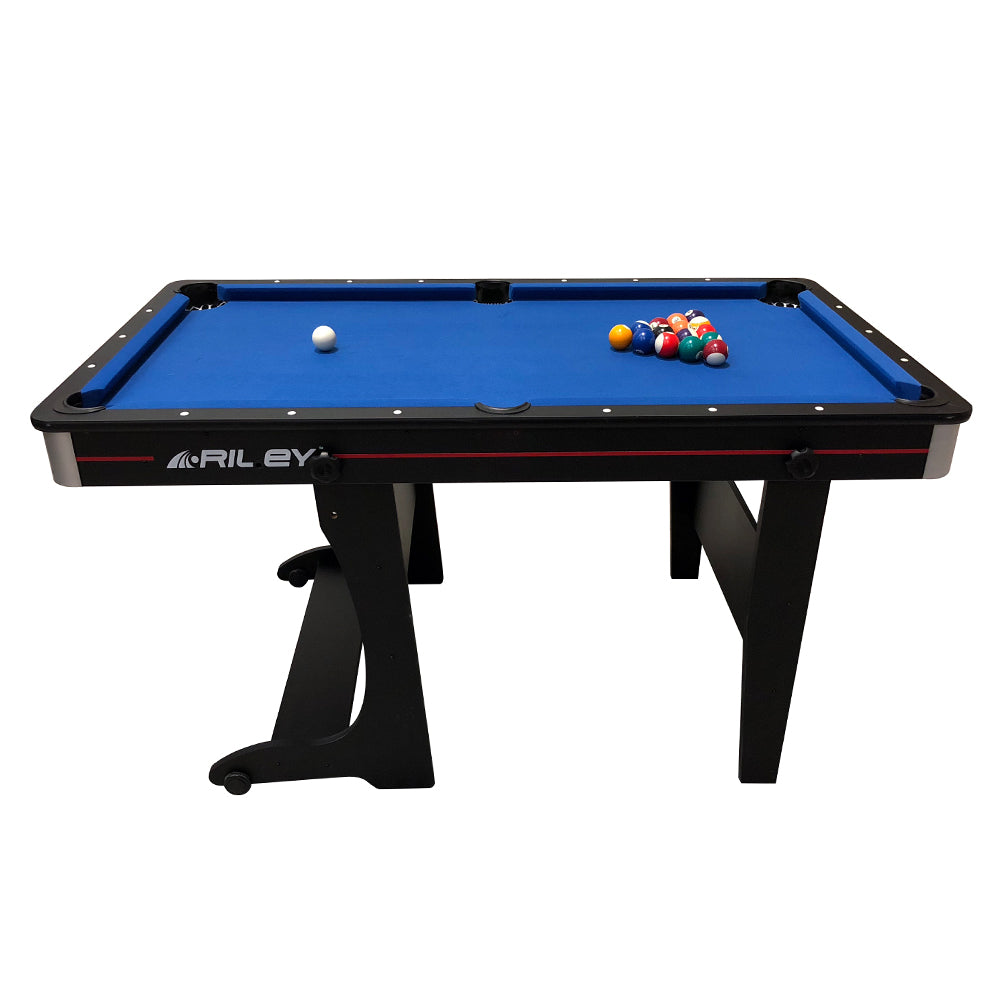 - PERFECT POOL & TABLE TENNIS TABLE FOR ANY GAMING ROOM: This 5ft pool table, with its sleek black finish and eye-catching Riley branding, adds a stylish and professional touch to any gaming setup. Whether for casual play or more serious practice, it's designed to enhance the atmosphere of your gaming space.